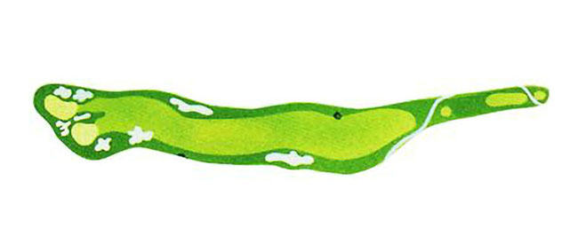 フェアウェイ右側180ヤード付近に大きなタブの木があり、最短距離を狙って